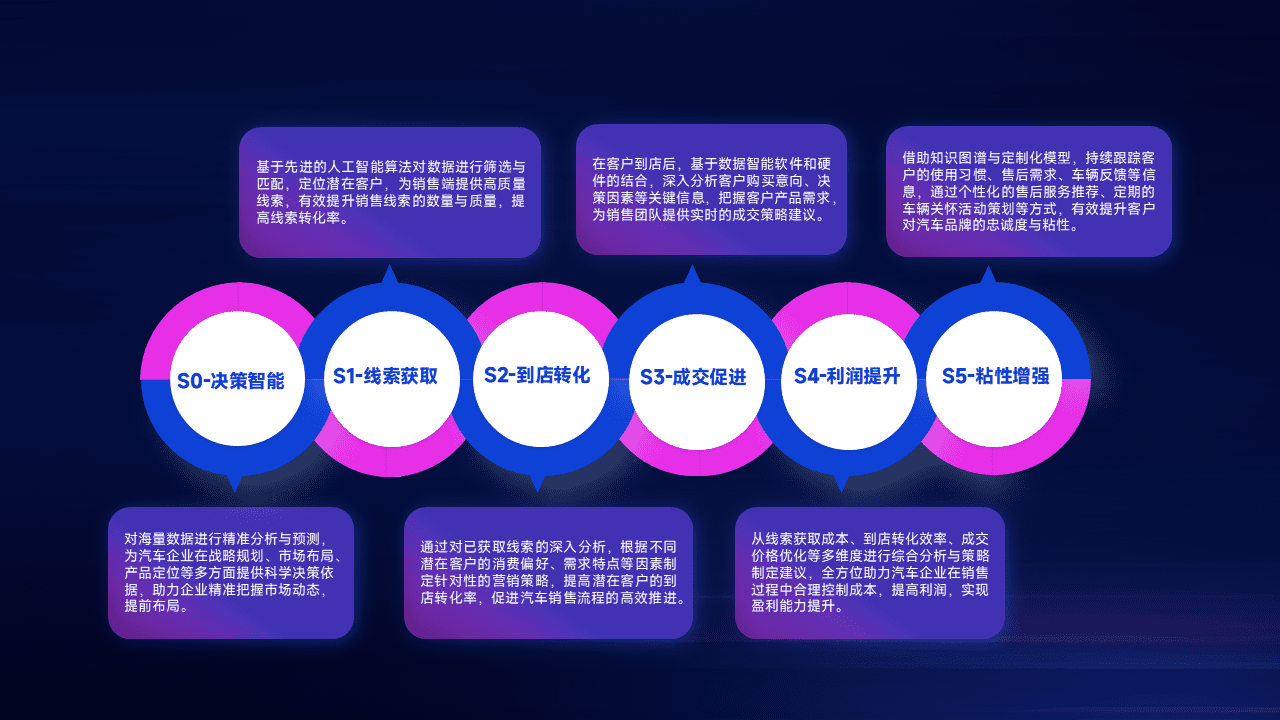 通过拓宽潜在客户来源、、、优化线索分配并提高到店转化率,,,,以增强销售效率。。同时,,,,利用线索数据不断优化分析模型,,,,有效提升转化率,,扩大营销影响力。。。。